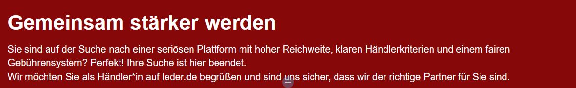 Als Partner von www.Leder.de treten Sie selbst als Anbieter und Kaufvertragspartner gegenüber den Endkunden auf.